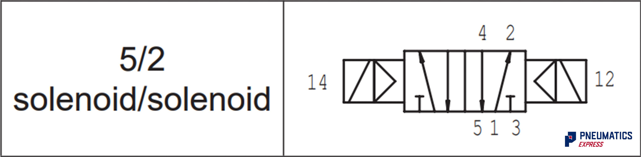 'Quick Specs': MPN 034121, 1/4" BSP 5/2 solenoid/solenoid valve, electrically operated. Made in Italy. Alumnium valve body.