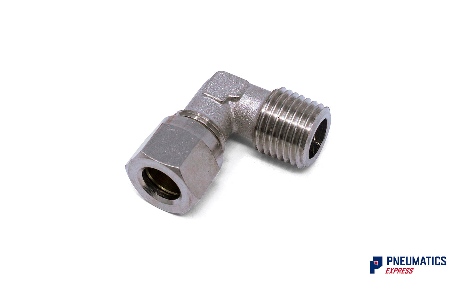 Tube Ø8 - 1/4 BSPT Elbow Compression fitting in Nickel Plated Brass. Made in Italy by API.