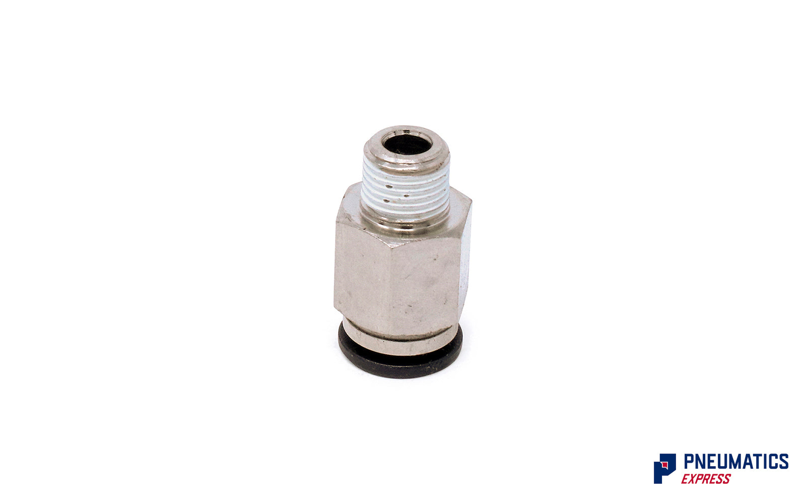 This is Watson Industries Male Stud pneumatic fitting that has a 8mm Push-In Fitting on one end, and a 1/8" BSP male thread on the other side with PTFE tape already conveniently applied. This is a real value proposition due to its price to quality ratio. It is very popular in the United Kingdom.