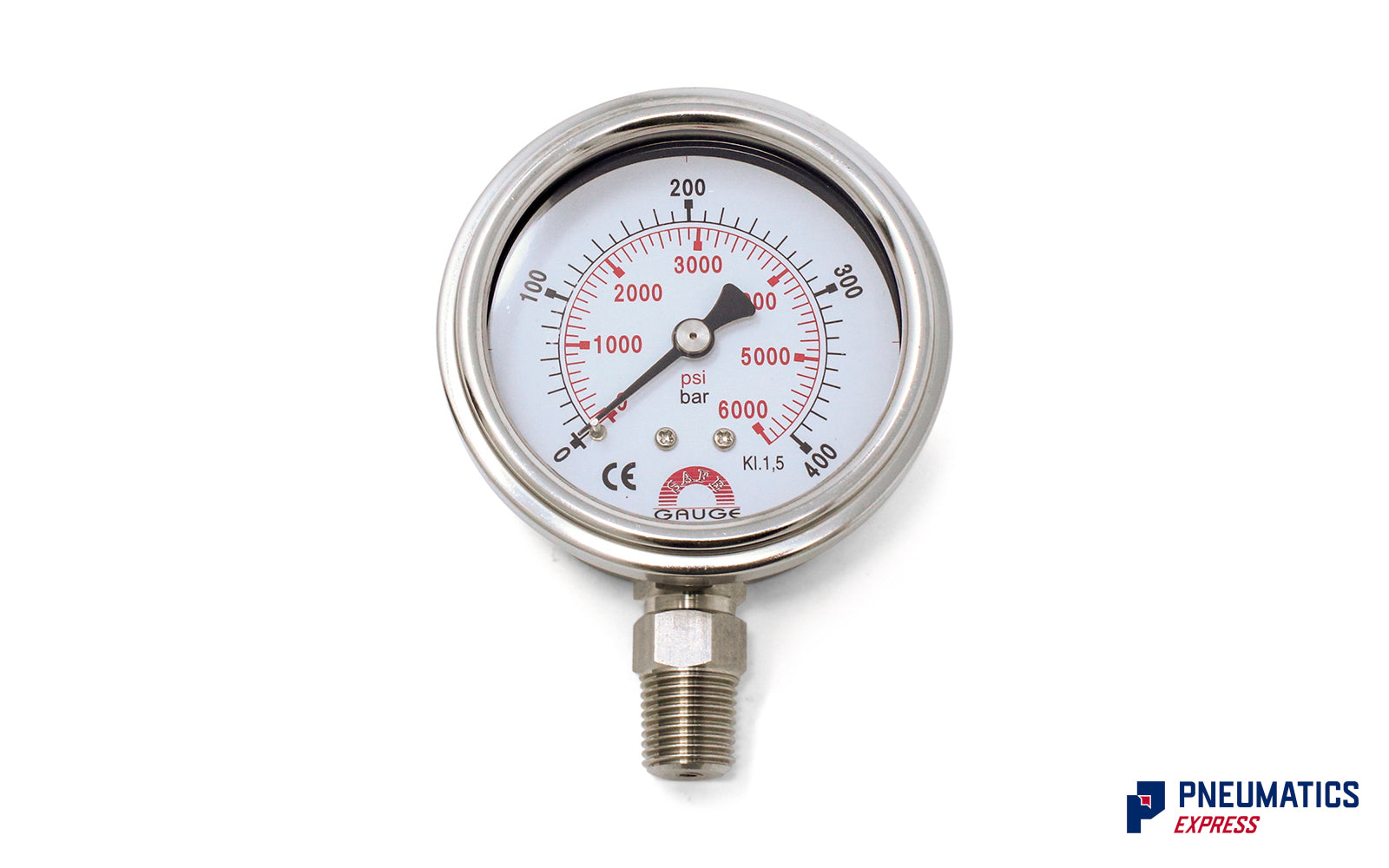 The Watson Industries PG-400 is a 400 Bar (6000 PSI) Pressure Gauge in a stainless steel (AISI 316) body and has a G 1/4" BSPT thread at the bottom. This stainless steel gauge is an incredible a value proposition in that no other stainless steel gauge is offered at the same price point. This gauge is suitable for all general industrial uses and is a popular item amongst our gauges